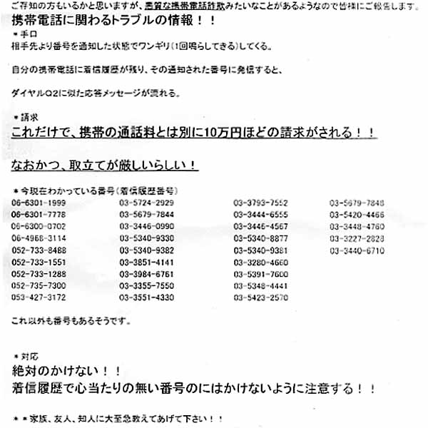 また、上記に掲載されている番号には絶対に電話をしないで下さい!